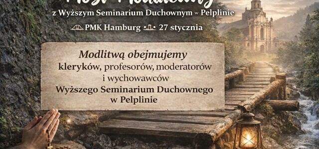 We wtorek, 27 stycznia, Polska Misja Katolicka w Hamburgu zostanie objęta modlitwą wspólnoty Wyższego Seminarium Duchownego w Pelplinie w ramach inicjatywy Most modlitewny. Tego dnia pragniemy również szczególnie modlić się za seminarium, kleryków oraz wszystkich przygotowujących się do kapłaństwa. Most modlitewny jest wyjątkową formą duchowej jedności pomiędzy parafiami diecezji a Wyższym Seminarium Duchownym w Pelplinie. Każdego dnia, gdy klerycy przebywają w seminarium, modlą się oni w sposób szczególny za jedną, konkretną wspólnotę parafialną: za jej kapłanów, rodziny, osoby konsekrowane, chorych, samotnych oraz za zmarłych parafian. W odpowiedzi dana wspólnota zaproszona jest do modlitwy za seminarium — za kleryków, moderatorów, wychowawców i profesorów, a także o nowe i święte powołania do służby Bożej.