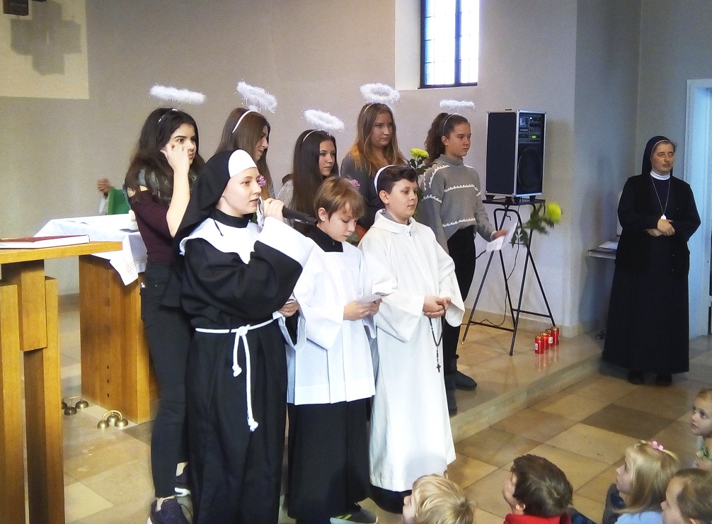 W te jesienne dni obchodzimy święto Wszystkich Świętych i Dzień Zaduszny. Udajemy się na cmentarze, by tam prosić Boga o zbawienie naszych bliskich.  Pamięć o zmarłych jest dla Polaków bardzo ważna. Niestety, w Hamburgu 1. jak i 2. listopada są dniami pracy. W Szkole Sobotniej w tym roku wspominaliśmy naszych przodków w sobotę 3 listopada. Podczas mszy św. uczniowie klas starszych (5-8) pod kierunkiem p. Nataszy i s. Marty przygotowali i przedstawili program artystyczny nawiązujący do świętych, przemijania ludzkiego życia i śmierci, składając w ten sposób hołd wszystkim zmarłym.