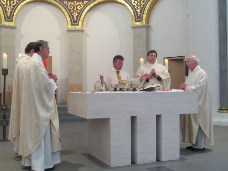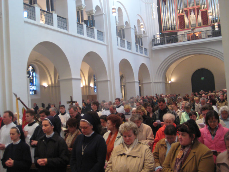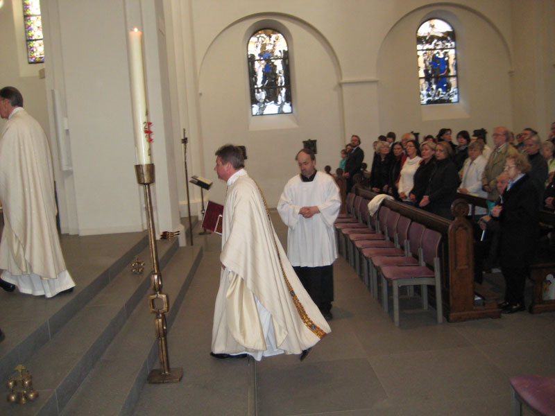 W czasie uroczystej mszy św. licznie przybyli wierni modlili się o beatyfikację sługi Bożego Jana Pawła II. Tej szczególnej mszy św. – celebrowanej w języku niemieckim, polskim i chorwackim – przewodniczył ks. dr Jacek Bystron – proboszcz PMK w Hamburgu.