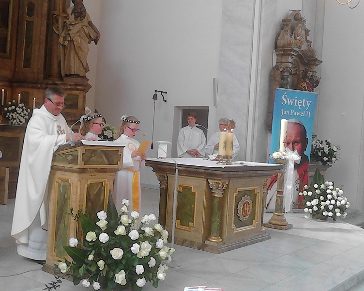 Niedziela 22 maja 2016 r. była w naszej hamburskiej wspólnocie parafialnej dniem szczególnym. Wspominaliśmy bowiem 96. rocznicę urodzin św. Jana Pawła II. Z tej okazji na wszystkich mszach św. niedzielnych polecaliśmy dobremu Bogu przez Jego wstawiennictwo nasze prośby i intencje. Przy wyjściu z kościoła członkowie Koła Przyjaciół Fundacji Jana Pawła II rozprowadzali pozycje książkowe i filmy o Janie Pawle II oraz obrazki z tekstem modlitwy.