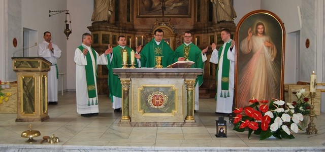 Peregrynację oraz rekolekcje poprowadził ks. Mariusz Marszałek, który przyjechał do nas z Wilna, szczególnego miejsca związanego z historią i kultem Bożego Miłosierdzia. Ks. Rekolekcjonista podzielił się z nami świadectwem swojego życia i powołania kapłańskiego. Przybliżył biografię i duchowość postaci, bez których nie sposób mówić o kulcie Bożego Miłosierdzia. Przedstawił, w sposób niezwykle kompetentny i przejrzysty, biografię i drogę do świętości św. siostry Faustyny, wskazując na te momenty jej życia duchowego, w których Bóg w sposób mistyczny ukazywał się Jej, mówiąc o swoim miłosierdziu i nakazując głoszenie go całemu światu. Przybliżył również osobę bł. ks. Michała Sopoćki, spowiednika św. Faustyny, podkreślając szczególną jego rolę w jej życiu wewnętrznym i powołaniu zakonnym. Ks. Mariusz, posługując się słowami jakie pozostawiła nam św. Faustyna w swoim Dzienniczku, ukazał istotę i sens tej szczególnej postawy miłości Boga do człowieka, która wyraża się w Jego miłosierdziu. W swych naukach przybliżył nam duchowe przesłanie jakie płynie z wizerunku Jezusa Chrystusa Miłosiernego, który gościliśmy w naszej Misji, namalowanego na podstawie objawień św. Faustyny. Obszernie i ciekawie omówił wymowę poszczególnych jego elementów. Uwrażliwił na to, iż Bóg znając ludzką skłonność do grzechu, wskazał na swoje Miłosierdzie jako wyraz Jego Ojcowskiej miłości, większej i silniejszej niż wszelkie nasze słabości i upadki. Zwrócił uwagę również na prawdę mówiącą o tym, że Bóg oczekuje od nas nie tylko wewnętrznej postawy zaufania i zawierzenia Jego Miłości, lecz także postawy szczerego nawrócenia. Zachęcił do tego, aby ufając w Boże miłosierdzie, samemu stać się jego świadkiem i apostołem w dzisiejszym świecie. Peregrynacja w naszej wspólnocie zakończyła się w czwartek 26 lutego uroczystą Eucharystią i niemniej doniosłym w swej wymowie nabożeństwem pożegnalnym. Kolejne miejsce na drodze peregrynacyjnej wizerunku Jezusa Chrystusa Miłosiernego, to Polska Misja Katolicka w Lubece.
