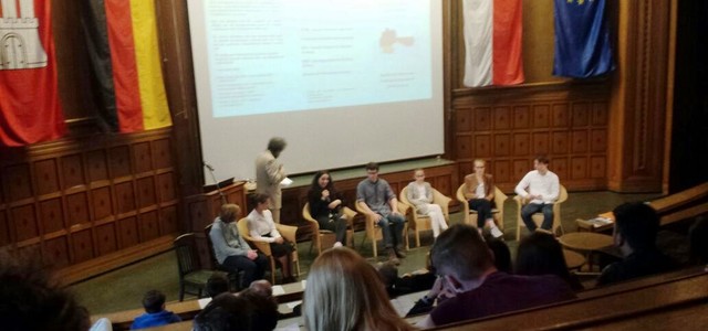 Wzięli w nim udział uczniowie i nauczyciele z kilku hamburskich szkół, którzy zaprezentowali kilkanaście projektów związanych z Polską (m.in. filmy dokumentujące wymianę szkół z Polski i Niemiec). Naszą Szkołę Sobotnią reprezentowała młodzież z klasy siódmej, która pod kierunkiem swej nauczycielki pani Beaty Luty-Paulsen przygotowała krótką prezentację naszej szkoły.