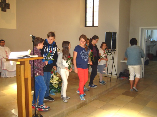 W sobotę 31.05.2014 r. obchodzono w naszej Szkole Sobotniej Dzień Matki. Nauczycielki z grupy porannej pod kierunkiem p. Barbara Grochocka oraz z grupy popołudniowej: p. Małgorzata Hajduk i p. Ewa Jabłońska przygotowały z uczniami kl. 2 i kl. 5 program artystyczny poświęcony Matkom. We wspaniałym występie artystycznym dzieci recytowały wiersze, a na koniec występu obdarowały swoje mamusie różami. Niejednej mamie zakręciła się łezka w oku. Występy odbyły się na mszy św., w czasie której modlono się za wszystkie matki, a także za ojców, których święto przypadało w czwartek 29 maja